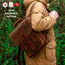 A large backpack with two inside sleeves, gusset flaps, front pocket and handle, fit for a 16" laptop.