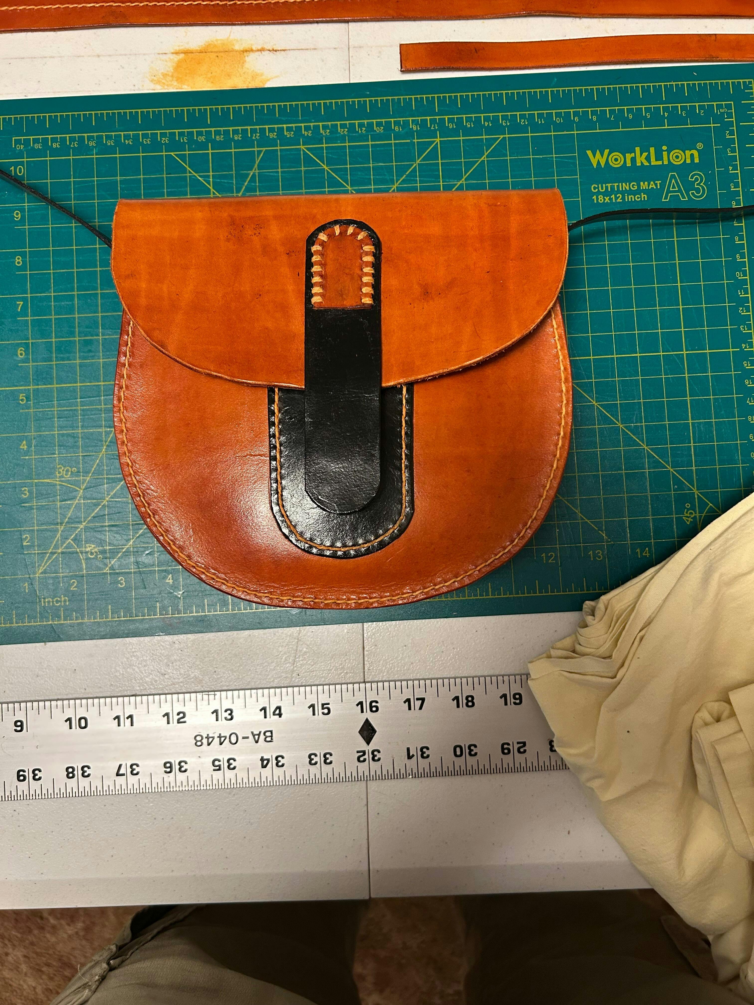 - 7 oz (2.8 mm) leather. You can make 3 bags from 11 sqf (1 sqm)