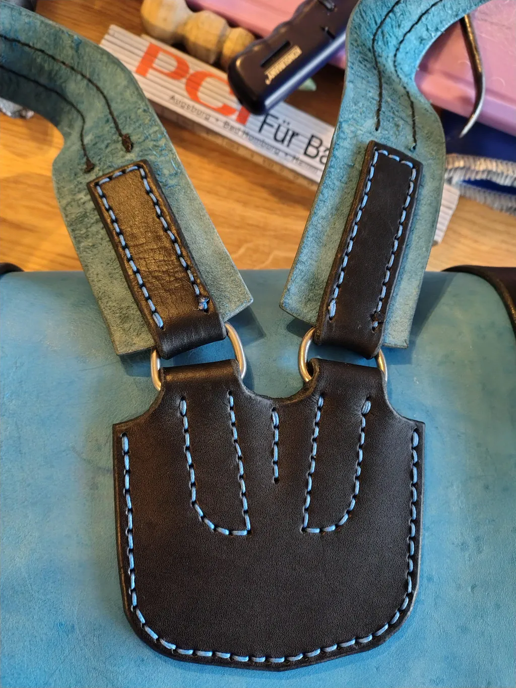 ✪ 0.3 sqm for the contrast leather, 4-4.5 mm veg-tan (long enough pieces for the straps)